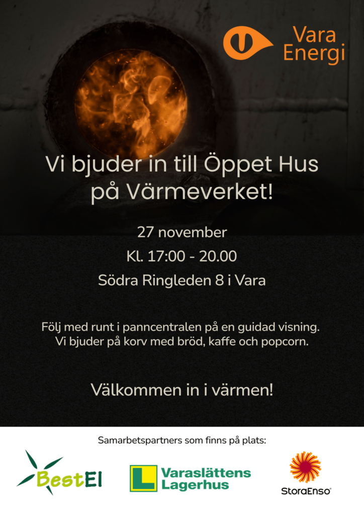 27 november kl 17.00 – 20.00 bjuder vi in till Öppet Hus på Värmeverket på Södra Ringleden 8 i Vara!